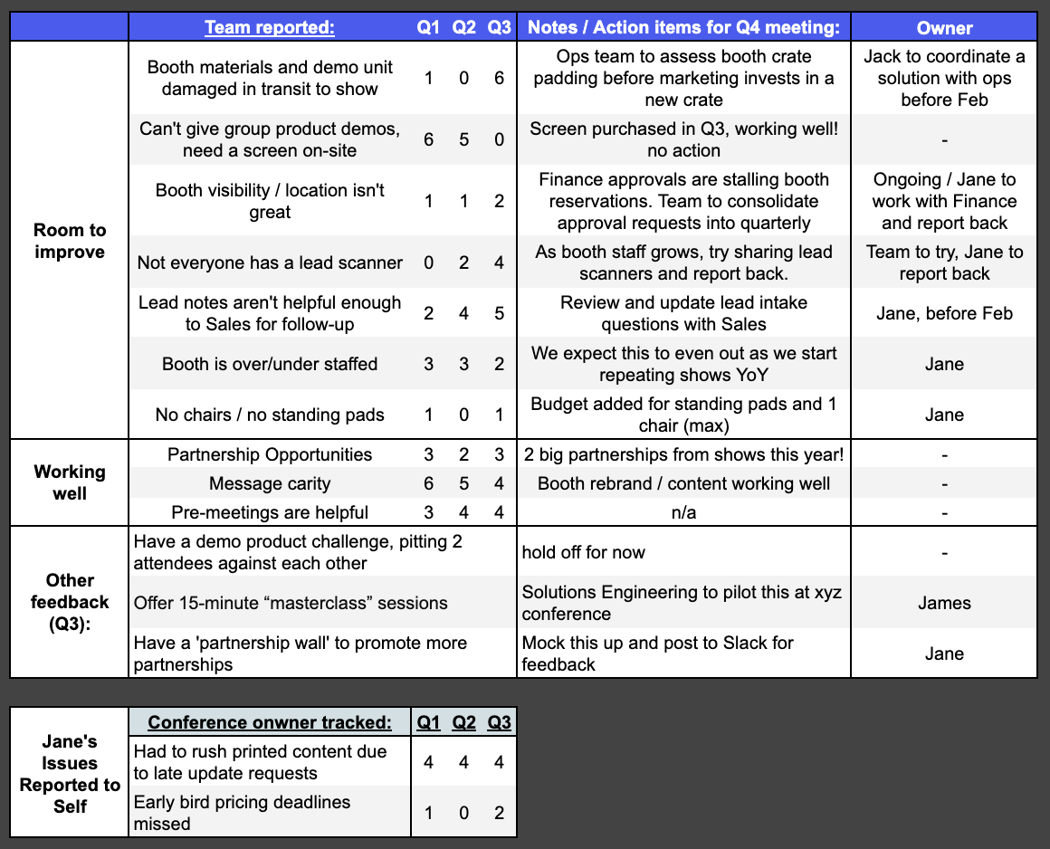 Pro tip: Aim for a mix of must-attend events and unexpected gems that could exceed expectations e.g. niche, regional, or up-and-coming shows for more targeted audiences. Your conference calendar will begin to come together organically as your program and teams mature, usually over a period of years.