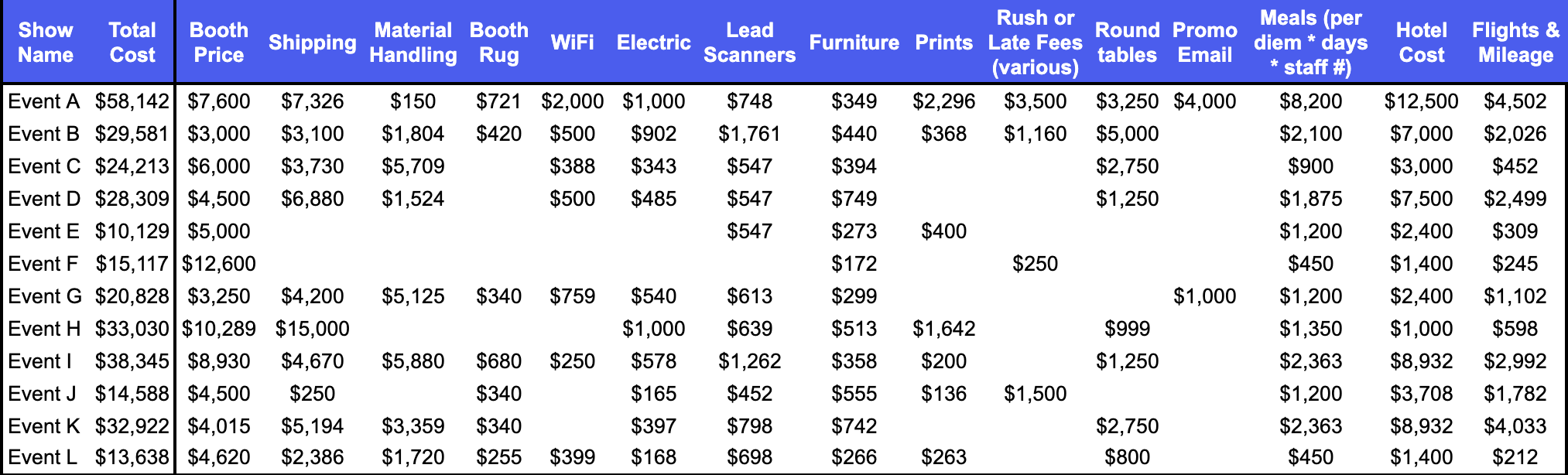 As you build stakeholder buy-in on a final show list and the level of investment and approach at each show, you’ll need to simplify the decision-making for team members who don’t have time to get into the weeds.